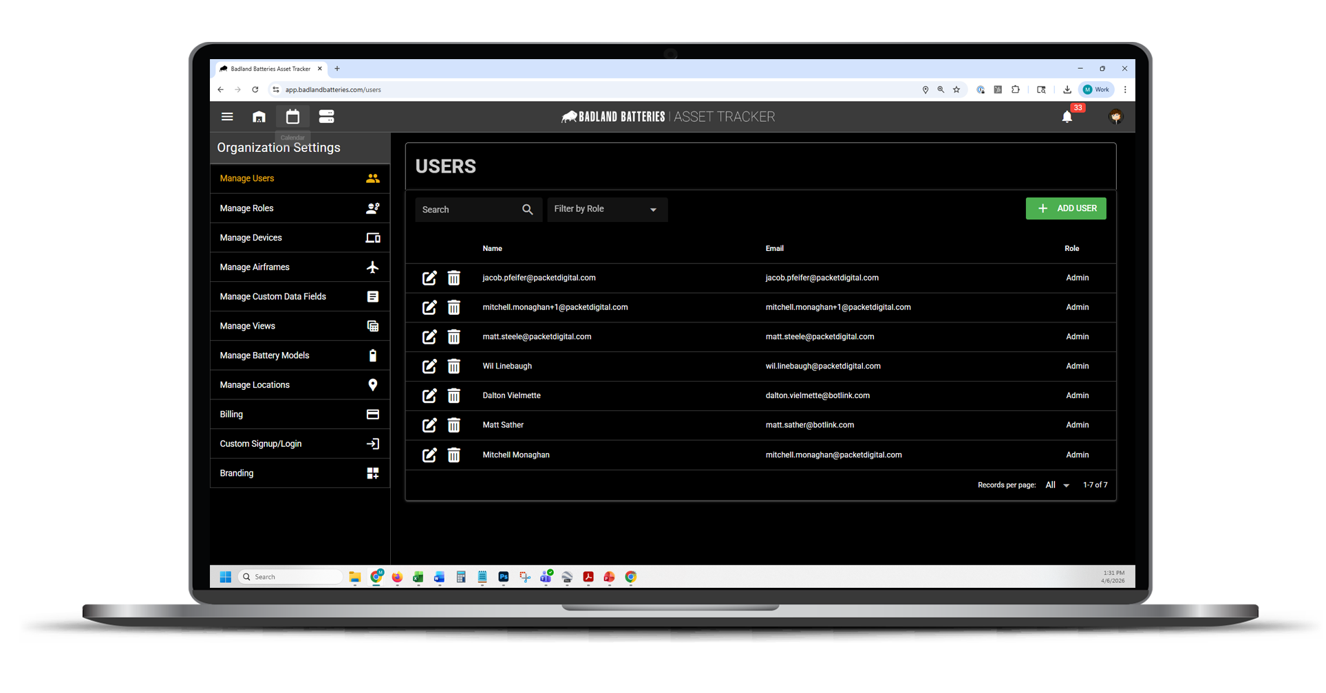 Easy to edit and add new batteries, airframes, or people to your organization